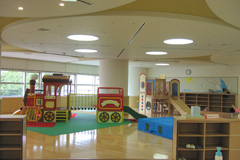 街中(近江町市場)にあり、ワンフロアに2つのコーナー(ぞう:乳幼児 きりん:幼児)を設けた広場です。子どもの一時預かり(有料)やスタッフによる子育て相談などが行なわれています。