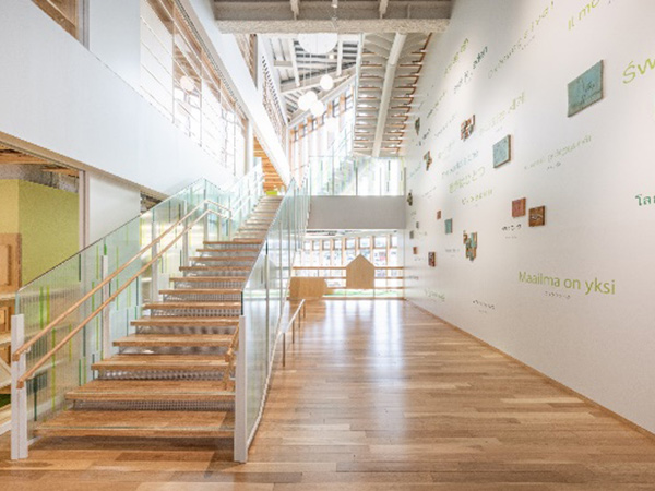 2・3階の階段周りには、外国語で書かれた絵本や外国の文化を知ることができる本を展示しています。