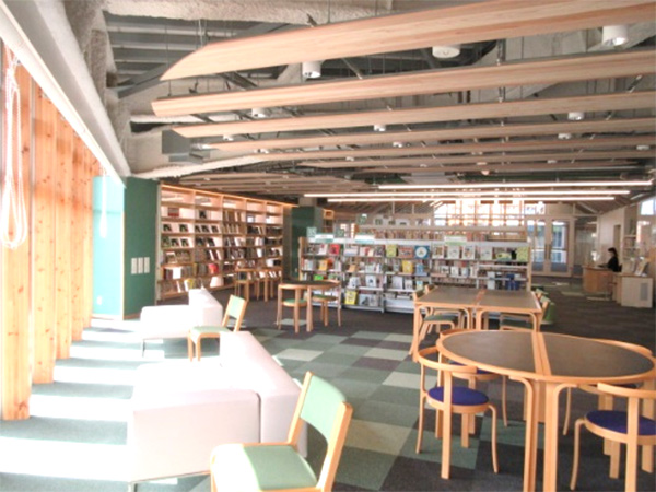 エリアです。金沢市や石川県の木材がふんだんに使われています。利用時は受付が必要です。