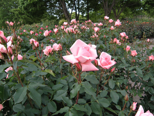 園内に約144種約1800本の大輪・中輪・小輪のバラが咲き誇ります。5月下旬~6月下旬と9月下旬~10月中旬が見頃。芝生広場やこども広場もあり、屋根付きの休憩所からはアスレチック遊具で遊ぶ子どもの姿を見守ることができます。 近くには教育プラザ富樫があります。室内遊び場があるので、小さいお子さん連れでも安心してたっぷり遊べますよ。