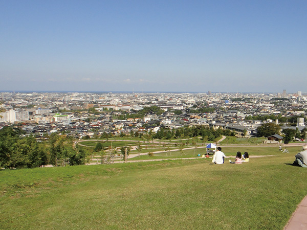 市内の南東に位置し、丘陵地が広がる総合公園です。市街地から日本海までのパノラマを一望することができます。
