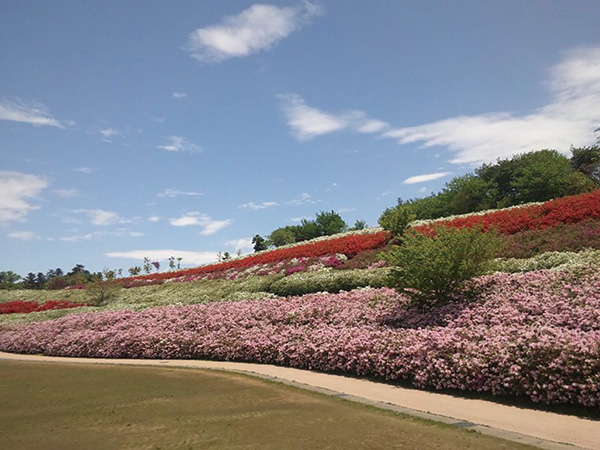 ウメ・サクラ・ツツジ・アジサイ・モミジ・ハギ・ツバキなど、四季折々の花木が植えられています。特に1万3千本あるつつじ園は満開の時期を迎えると壮観です。