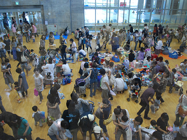 育児用品に特化したフリーマーケットを定期的に開催。衣服や玩具だけでなく、チャイルドシートなどの大型品も扱っています。ベビーカーで入場可能で、毎回たくさんの親子連れでにぎわいます。