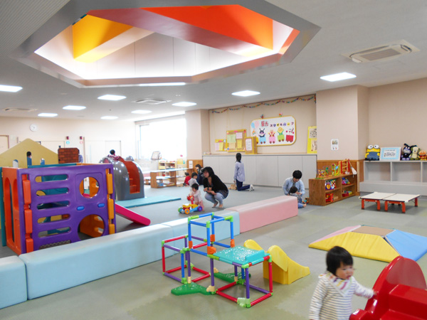 広くて開放感たっぷりの遊び場で、乳幼児を抱える多くのお母さんたちで毎日にぎわっています。地下駐車場があるため雨の日も便利。 隣接して、乳幼児向け絵本1000冊を備えた「絵本ルーム」があり、親子で絵本に親しむ場として利用できます。